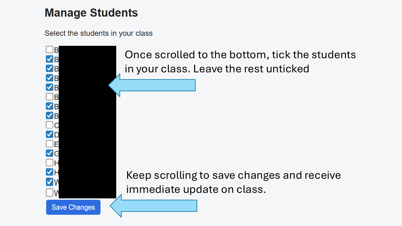 scroll down to the bottom and you will see all students in that year level appear. I recommend having IDattend open to assist in this. Simply tick the students in your class and click "Save changes"