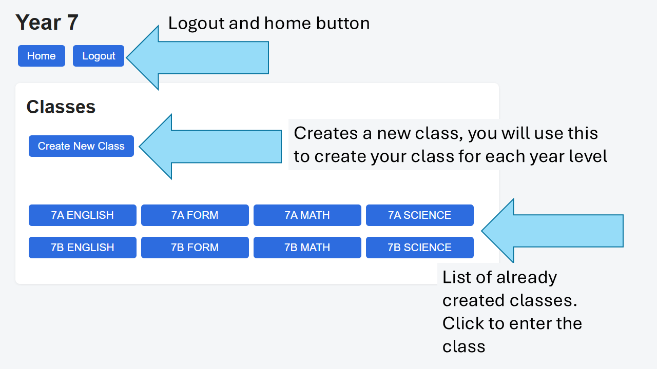 Once your class is set, controls are exactly the same as the entire year level page, only this time you only have your specific students.